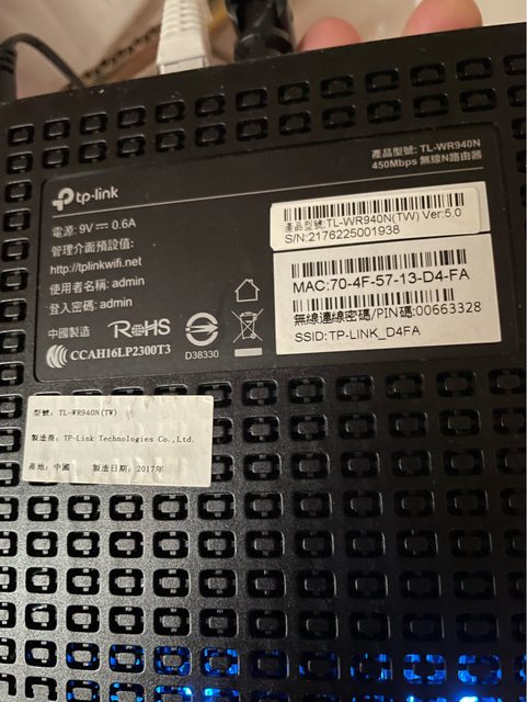 物品D TP LINK TL-WR840N路由器/250元