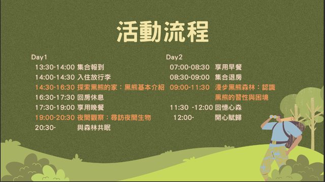 灣黑熊之族群監測和保育宣導 教案設計的延伸活動~歡迎有興趣的親子、一般大眾來報名