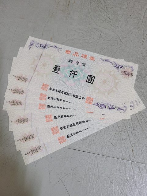 3.新光三越商品禮券面額1000,有6張