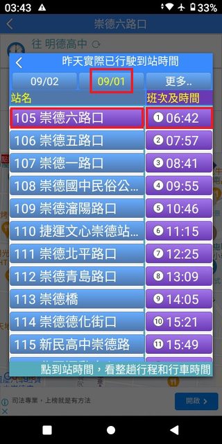 但在35~43分這之間,卻忽視錯過了發車點近在咫尺且6:40穩定發車的132號。