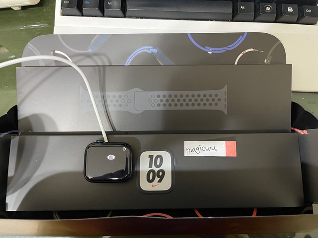 配件都在,原NIKE錶帶僅有拆開試戴而已。
