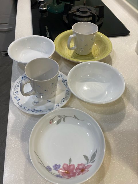 兩個杯子、五個盤子