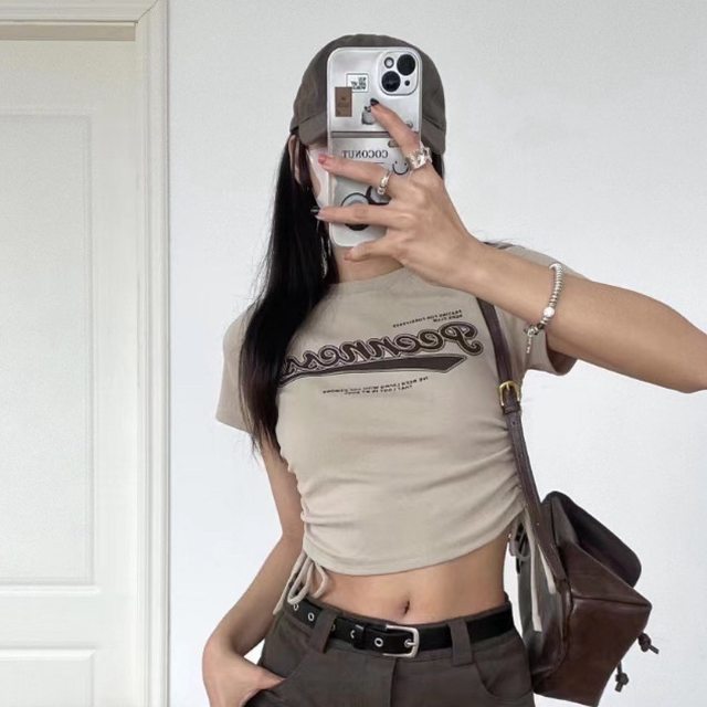 5.咖啡色側綁帶短版上衣$100(附賣家照)
