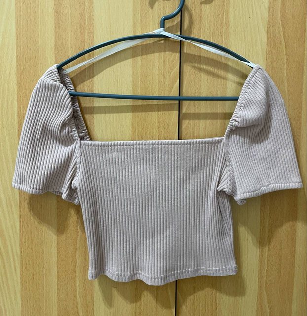2.嫩粉色方領短版上衣$100