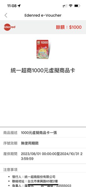統一超商商品卡1000*2