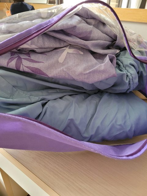 棉質雙人床包(紫緹花)+厚度適中雙人棉被(水藍)