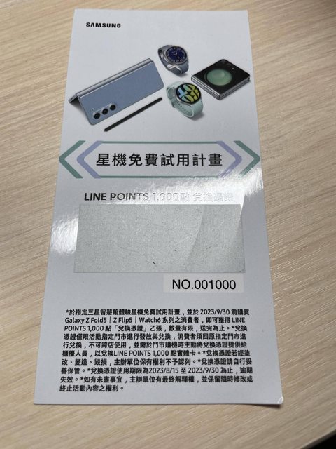 物品說明:先前參加星機試用計畫贈送的兌換券,需要消費z fold 5/flip5/watch6才能兌換