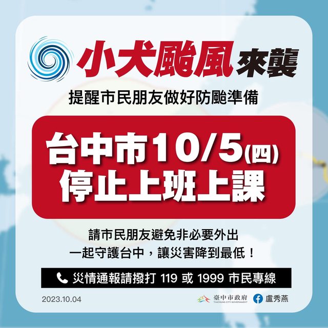 推 fspmlp : 彰投也都停班課了 10/04 18:59