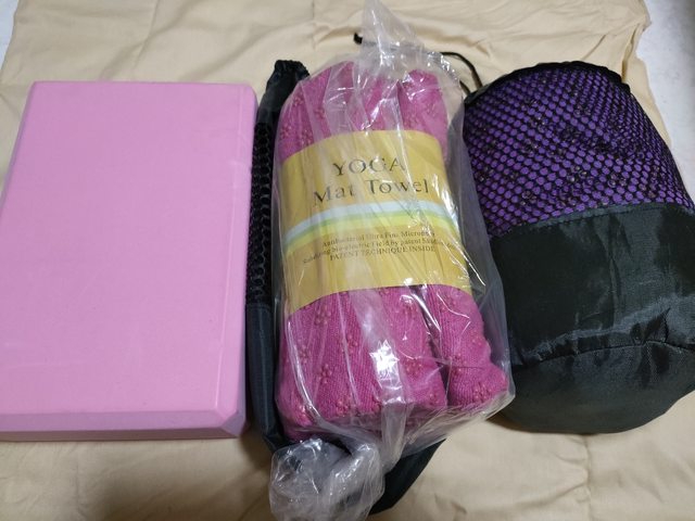 全新瑜珈墊鋪巾2個+未使用過瑜伽磚1個