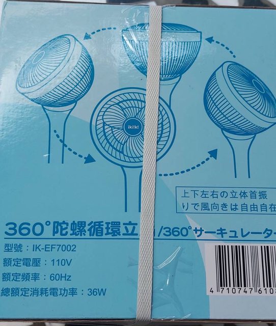 1.ikiiki 360度陀螺循環立扇IK-EF7002(全新),連拆都沒拆超級新,售$1400元。