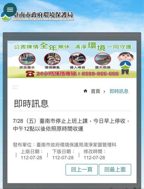 推 calil: 台南市垃圾清運,中午12點後就正常原時間清運囉 07/28 17:53