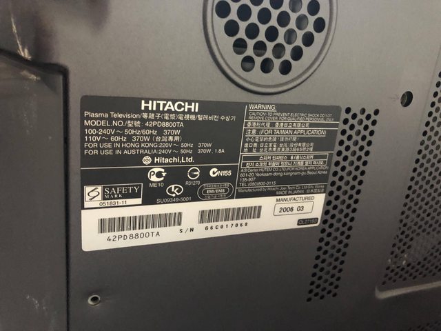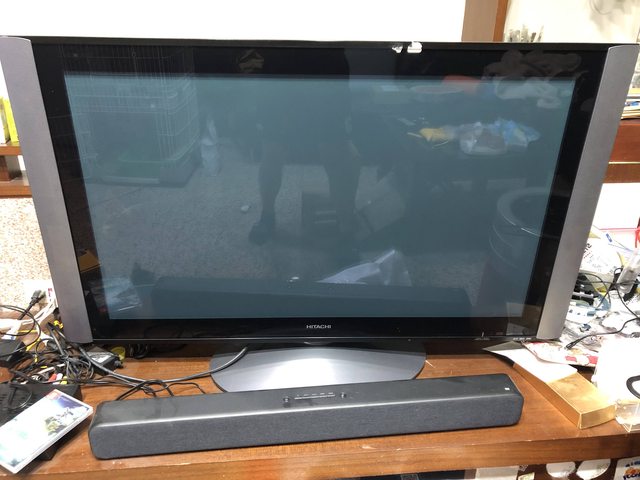 HITACHI電漿電視,畫面正常但是喇叭大聲會爆音,所以我是外接音響來使用,售500元,需要來自己搬走