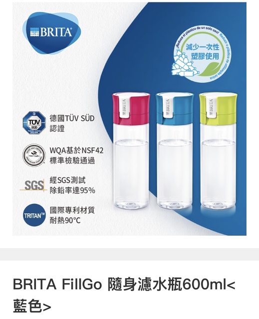 「BRITA FillGo 隨身濾水瓶600ml<藍色>」