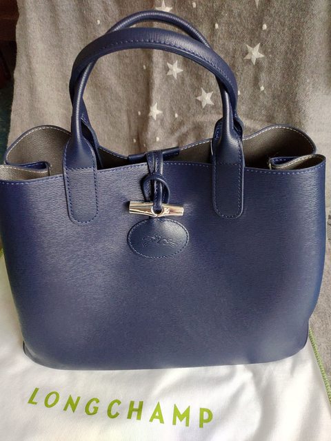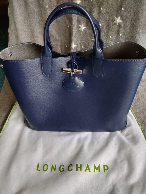 2. LONGCHAMP ROSEAU REVERSIBLE系列雙面皮革肩背托特包 深藍/銀色 6999元