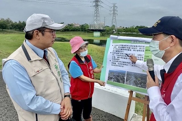 黃偉哲於會後前往仁德滯洪池及三爺溪萬代橋工程地點視察