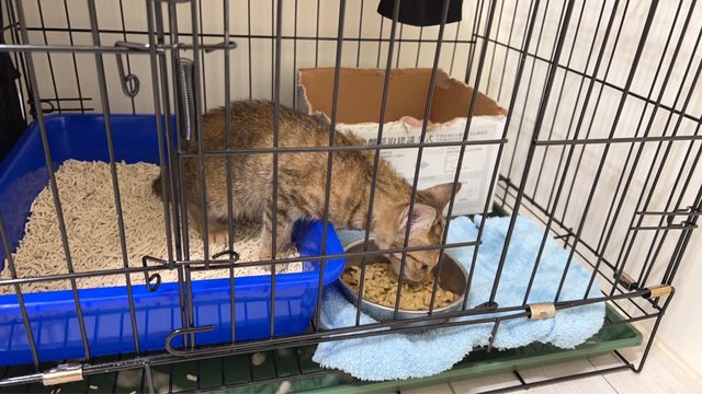 這幾天相處下來,她會自己去貓砂上廁所(天生就會嗎?好猛),食量也不錯,也漸漸從