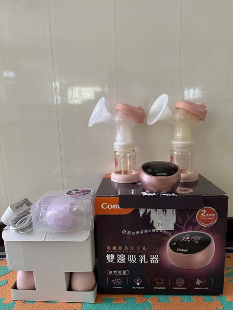 2.Combi 康貝 自然吸韻雙邊電動吸乳器 $1600 :使用三個月左右,只使用一邊有泛黃,另有一小零件少一個,但還有兩個備用的可用(我二手,前一手使用者說用不到十次)