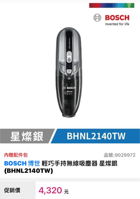 物品:BOSCH 世博輕巧手持無線吸塵器 Athlet 25.2V 白色BHNL2140TW(星燦銀),另其他