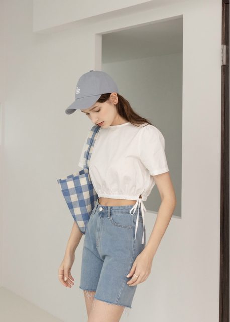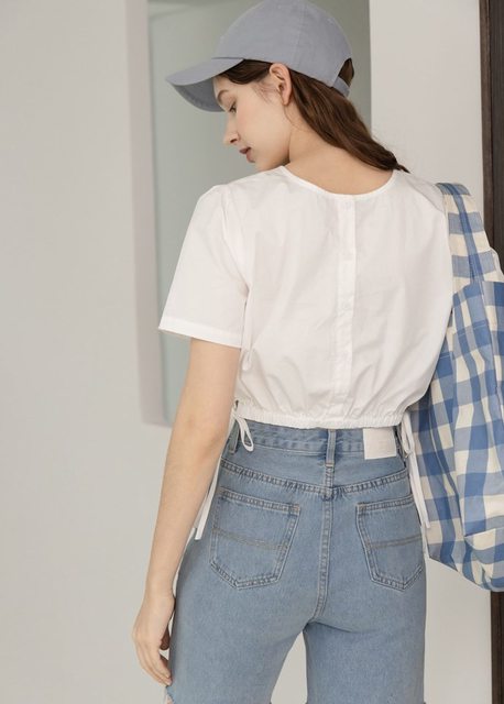 1. 全新 The butters 下擺抽皺綁帶短版排釦上衣