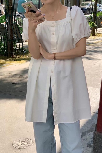2. 全新 Cover 方領中長澎袖上衣 售1000