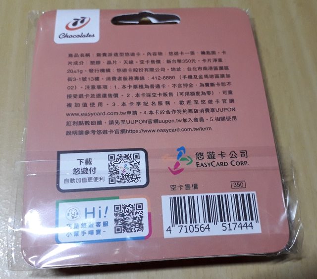 2.新貴派巧克力造型悠遊卡 350元