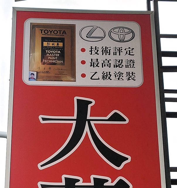 2.大蘴有兩位老闆都是TOYOTA原廠烤漆技術出身,還有原廠認證證書