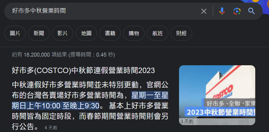 標題[問題] 好市多中秋營業時間