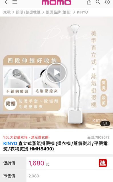 1.KINYO 直立式蒸氣掛燙機 二手近全新