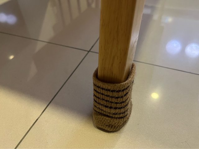 平常桌腳都用絨布保護套,桌面幾乎沒有刮痕