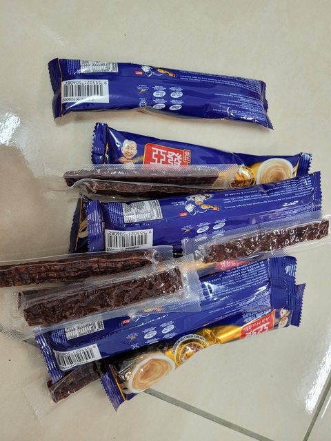 為三合一咖啡包及肉乾