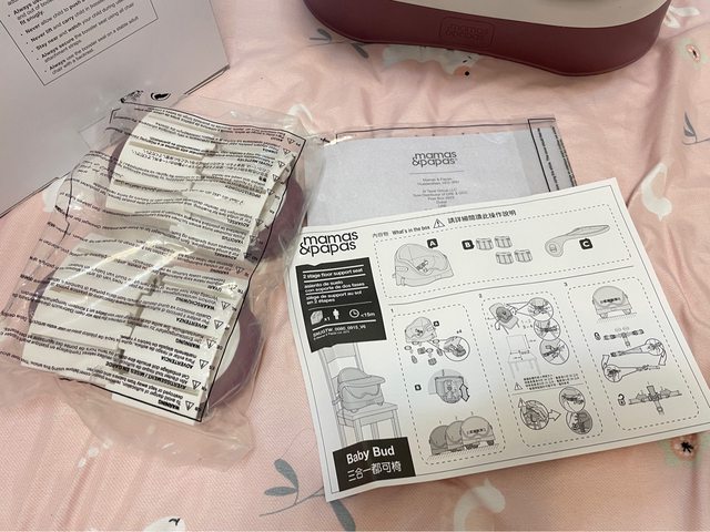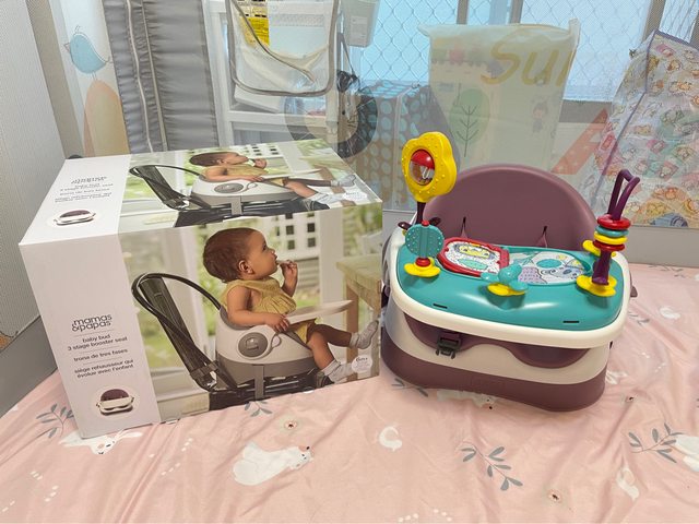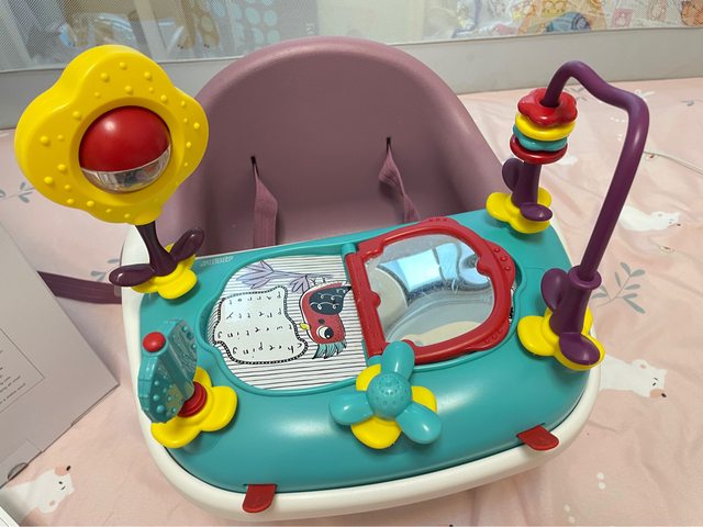 1. Mamas & Papas三合一都可椅含好好玩樂盤-乾燥玫瑰,$1500元,桌子邊邊有被寶寶用