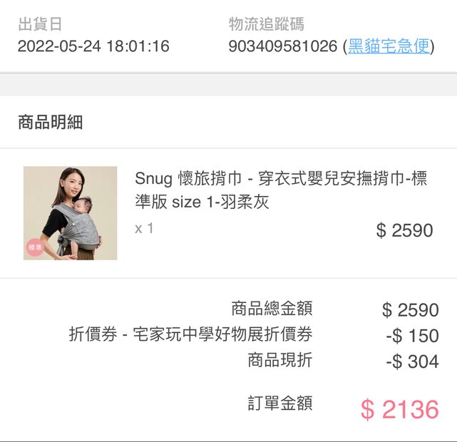 2. snug 馨力揚懷旅揹巾-羽柔灰,售出,寶寶現在愛走路不喜歡人揹著