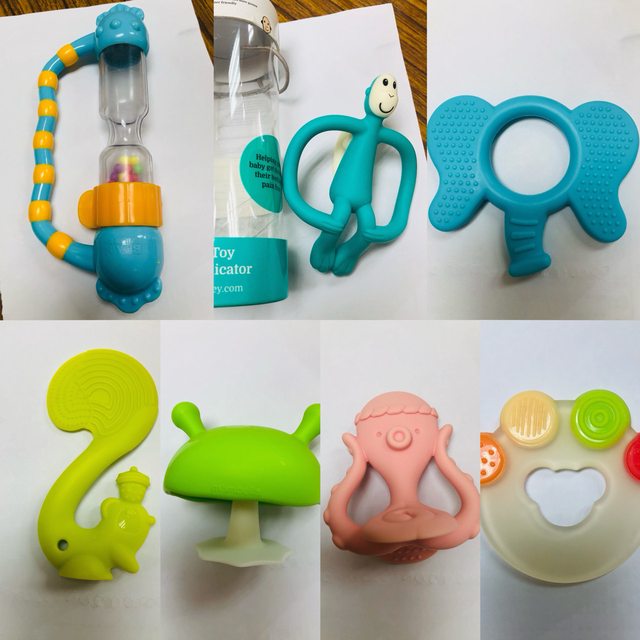 咬咬猴當初原價490、蘑菇150、松鼠$180、章魚150、果凍固齒器100、大象固齒器100,
