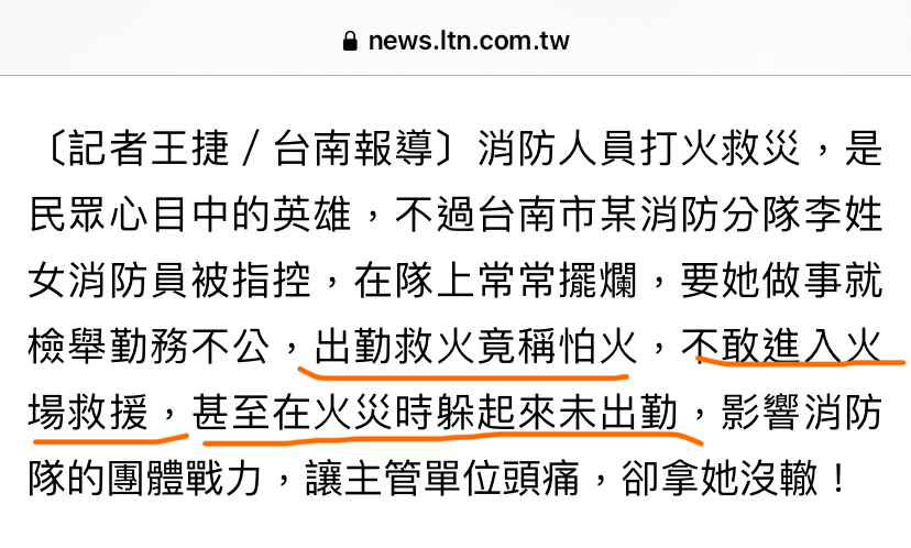 噓 wennai: 她是「不敢進入火場」、「躲起來未出勤」,跟判斷適不適 10/31 20:15