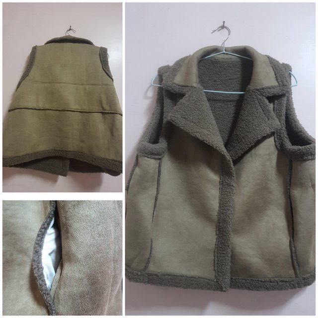 適合冬天保暖穿搭。麂皮是滑面舒適布料,有兩釦,雙口袋內車縫,質感佳,因店家寄錯,已有同款商品,同訂單又有其他商品,退貨手續繁瑣故轉讓給有緣人。