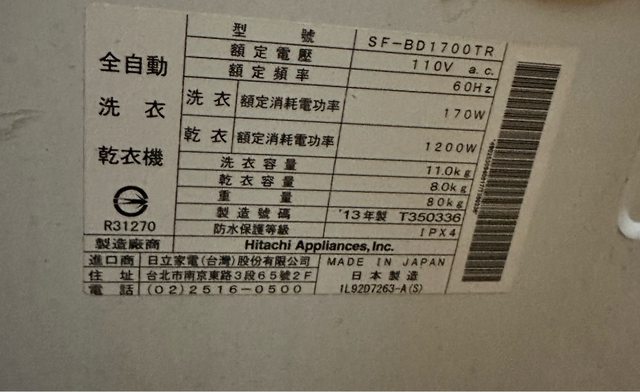 標題[交易] 日立 洗脫烘 洗衣機 送洗衣機架