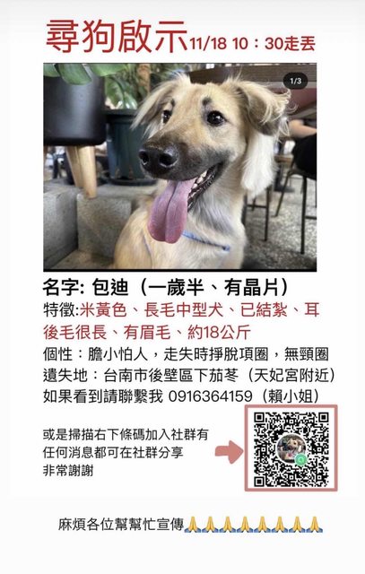 希望後壁人能幫忙注意有沒有看到包迪