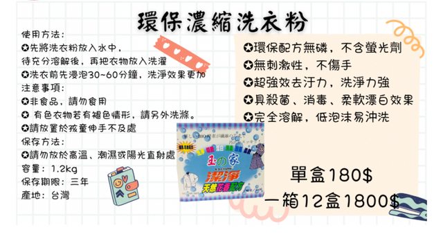 1.玉的家 潔淨酵素洗衣粉(月桃故事館)