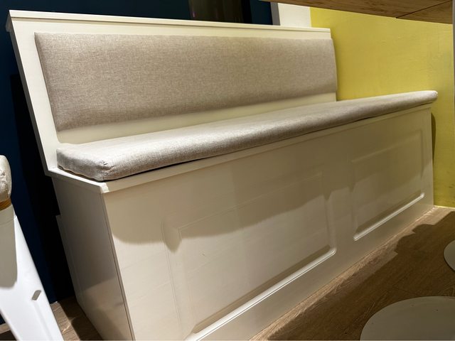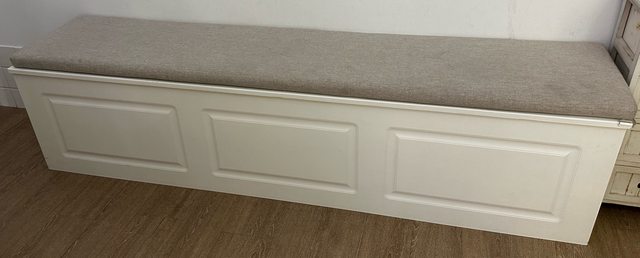一字型,無椅背,上掀,正常箱體,白色,麻布椅墊,尺寸長196公分/寬40公分/高45公