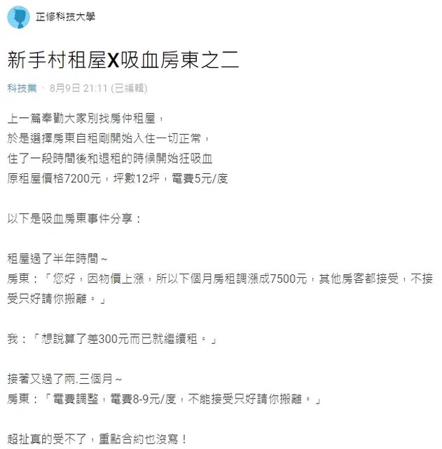 推 ryanpeace33 : 可憐啊台灣一堆吸血房東 真的欠打 08/12 20:45