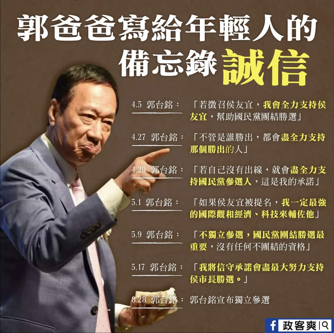 推 MLARAI : 誠信不是用在做賠錢生意的,郭董在商場做生意還輪得 09/01 13:18