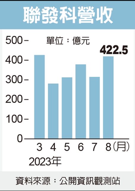 聯發科(2454)於昨(8)日公布8月營收為422.56億元,月增33%、年減5.4%,是近五個