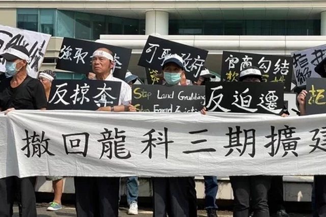 反龍科擴建自救會今上午再次到科管局抗議,居民不滿外界以「暴民、阻礙國家發展」醜