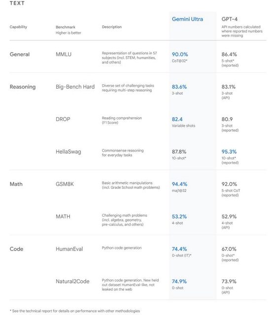 術基準測試中,有 30 個取得領先成績。其中 Gemini Ultra 以 90% 的高得分成為第一