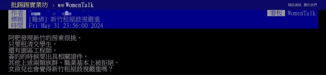 新竹租屋歧視嚴重」為題發文表示,發現新竹