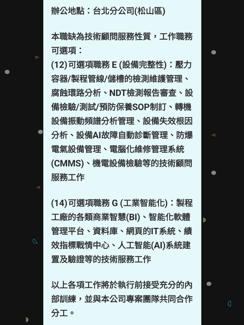 由於資料不多想請問,工作的環境,如果不方便公開的部分也可以私信,順便問一下面試