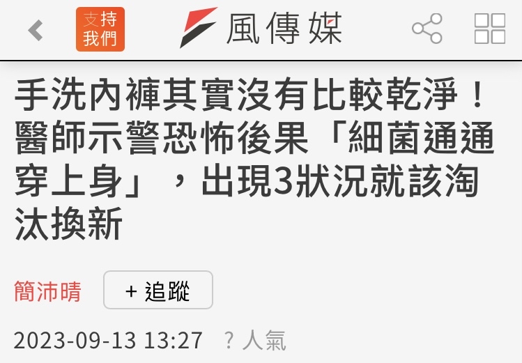 → laechan : 內褲更重要是在通風的地方充份晾乾 59.126.145.135 11/23 12:03