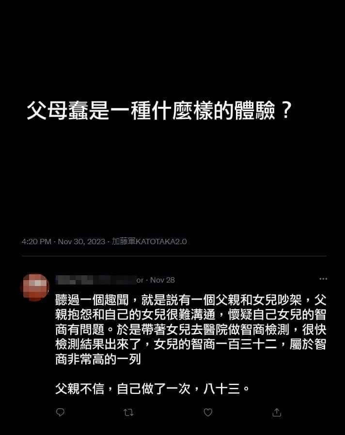 → SweetLee : 父母有錢是你賺到 父母沒錢只是回歸 1.175.144.222 12/06 16:29