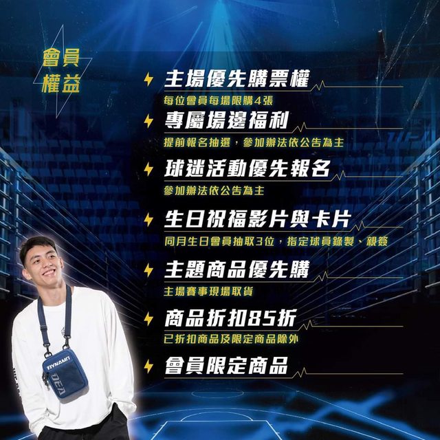 .主場例行賽、季後賽優先購票權,每位會員每場限購4張(優先購票順序為:DYNAMO會員→中信卡友→全面開放購票)