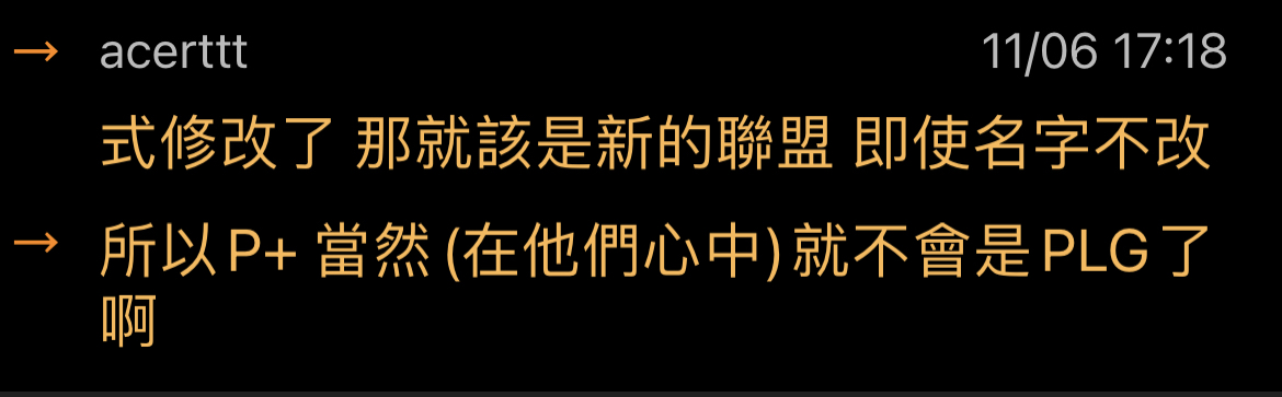 → Jen0525 : 改成協會制 名字就還是plg p+啊 11/06 17:22